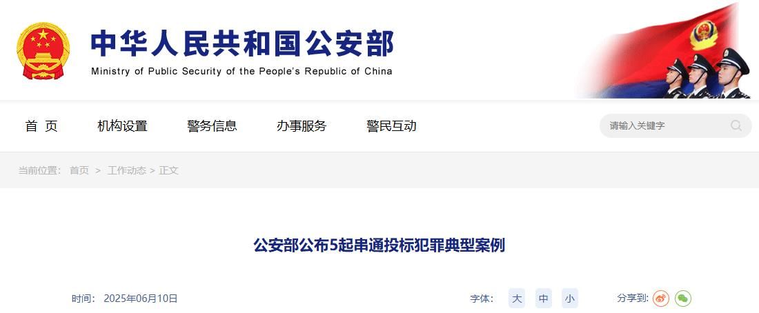 【警示教育】公安部公布5起串通投标犯罪典型案例